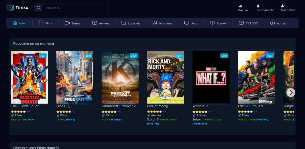 Il regroupe des milliers de films, de séries et d’animes. Mais comme les œuvres qui y sont présentées sont gratuites, Tirexo est considéré comme illégal par les autorités de régulation des droits sur internet (ARCOM).
